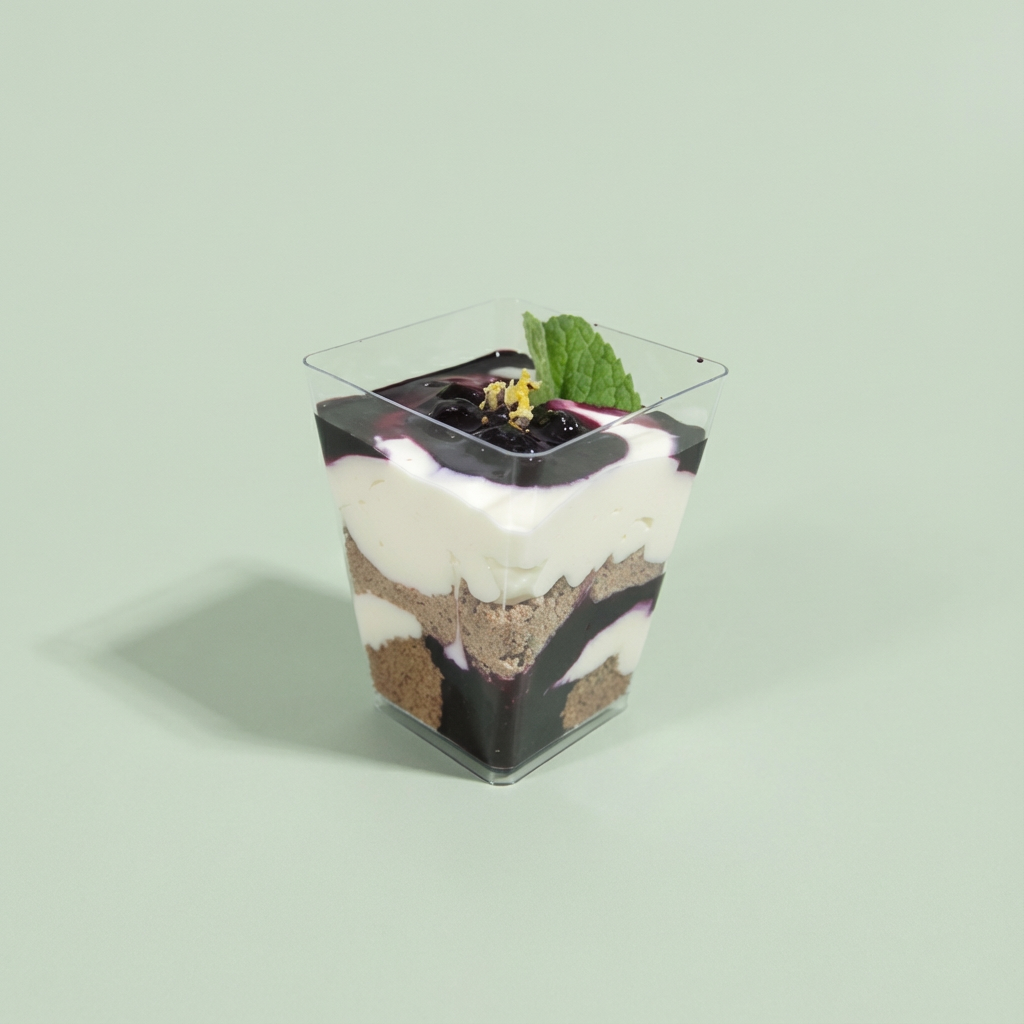 Un clásico renovado: capas suaves de crema y galleta que se funden con la frescura de los arándanos. Un postre ligero, elegante y lleno de sabor frutal que conquista desde la primera cucharada.